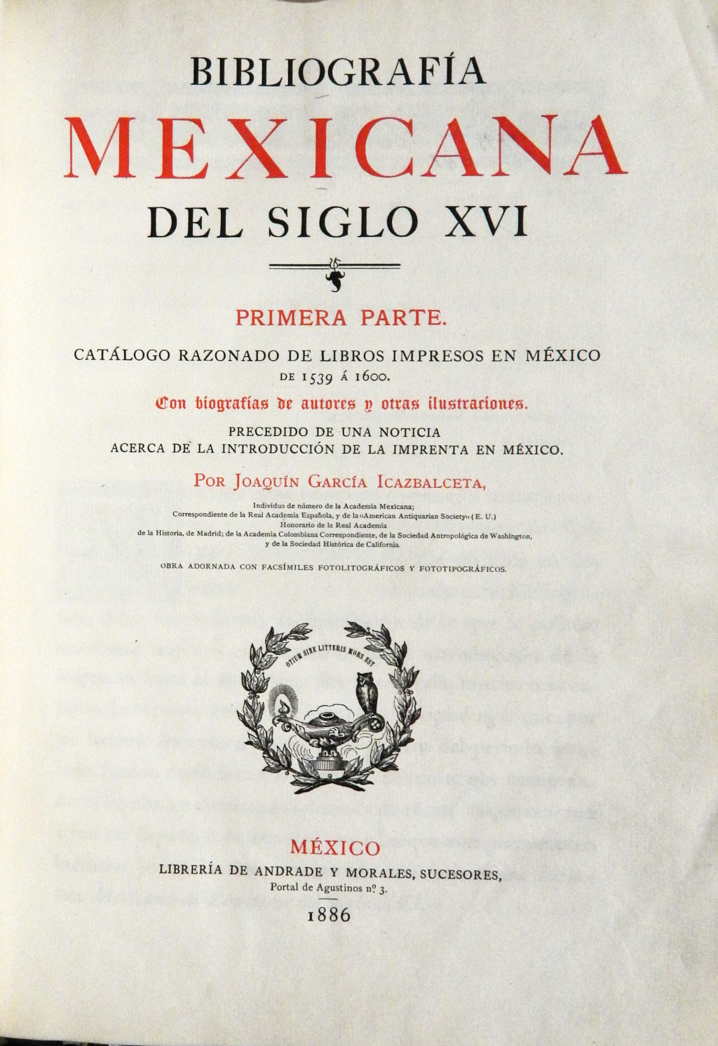 Bibliografia mexicana del siglo XVI, primera parte : catálogo razonado de libros impresos en México de 1539 a 1600 : con biografías de autores y otras ilustraciones…