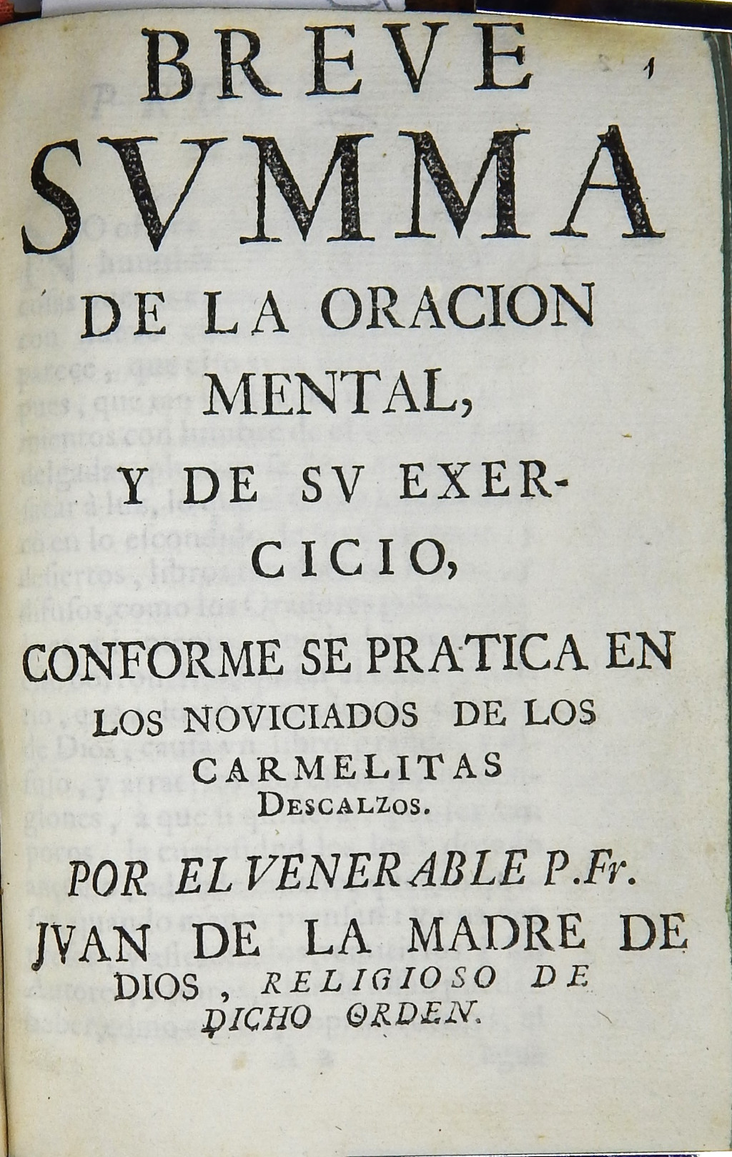 Breve svmma de la oracion mental, y de sv exercicio, conforme se practica en los noviciados de los Carmelitas Descalzos