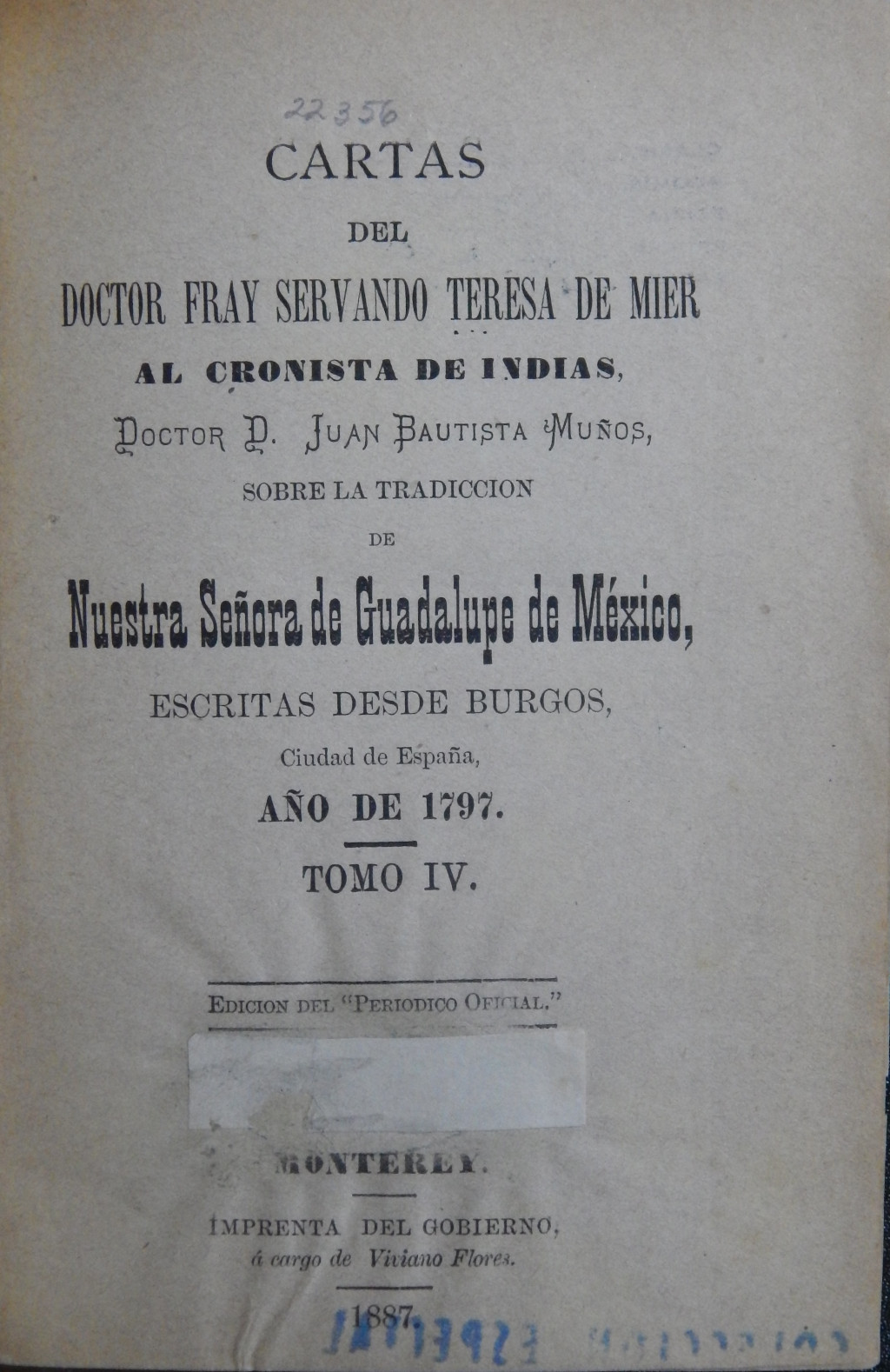 Bautista Muñoz, Juan, 1555-1615 -- Correspondencia | Mier Noriega y Guerra, José Servando Teresa de, Fray, 1765 -- 1827 Correspondencia
