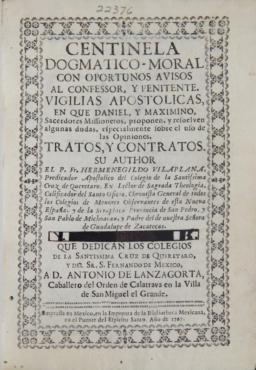 Centinela dogmatico-moral con oportunos avisos al confessor, y penitente