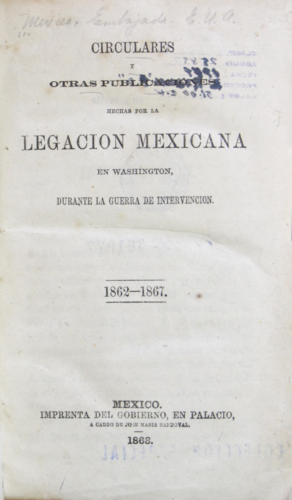 Circulares y otras publicaciones hechas por la legación mexicana en Washington, durante la guerra de intervencion1862-1867 MX-SC-DGB-BM-RV-22015 Descargar Registro catalográfico Orden25241No. de registro22015Clave de obraMX-SC-DGB-BM-RV-22015No. de clasificación972.072No. de autorM57Autor corporativoMéxico. Legación Estados UnidosTítuloCirculares y otras publicaciones hechas por la legación mexicana en Washington, durante la guerra de intervencion1862-1867Mención de autoríaEmbajada E.U.A.Ciudad, paísMéxicoLugar asociadoMéxicoEditorialImpreso en los talleres de "Excélsior".Año de publicación1946Siglo de publicaciónSiglo XXDescripción física285 P. : fots.Materias generalesMéxico -- Política y gobierno -- 1861-1867 | México -- Relaciones exteriores -- Estados Unidos | Estados Unidos -- Relaciones exteriores -- MéxicoColecciónColección Roberto Valles