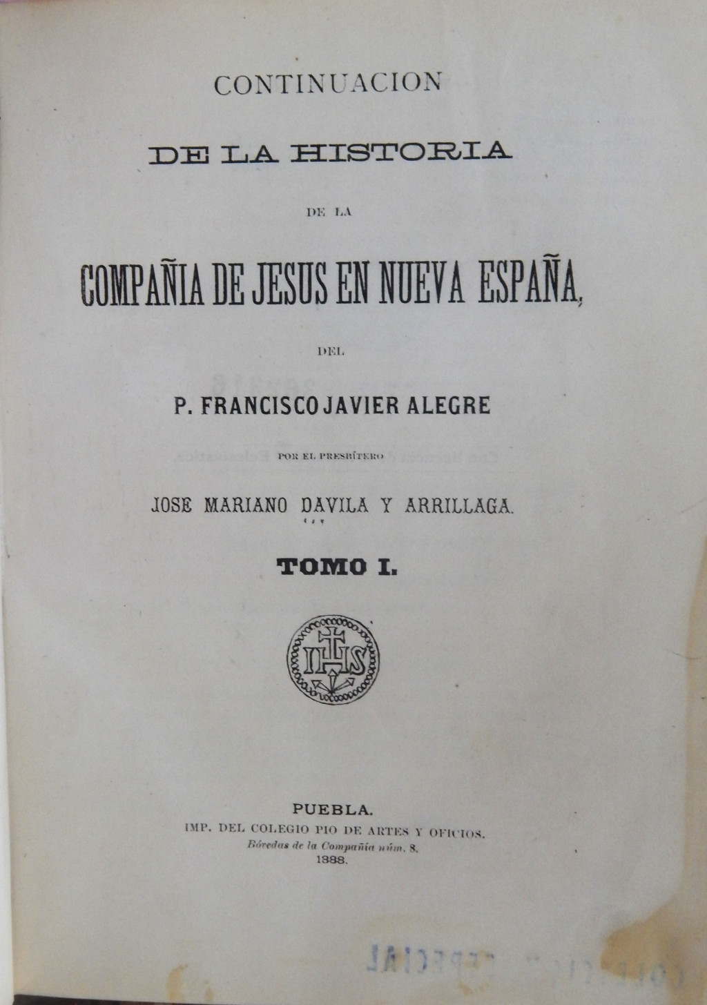 Continuación de la historia de la Compañía de Jesús en Nueva España, del P. Francisco Javier Alegre