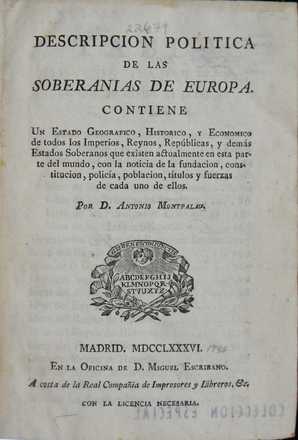 contiene, un estado geografico, historico, y economico de todos los imperios, Reynos, Repúblicas, y demás Estados soberanos que existen actualmente en esta parte del mundo, con la Noticia de la fundacion, constitucion, policia, poblacion, titulos y fuerzas de cada uno de ellos