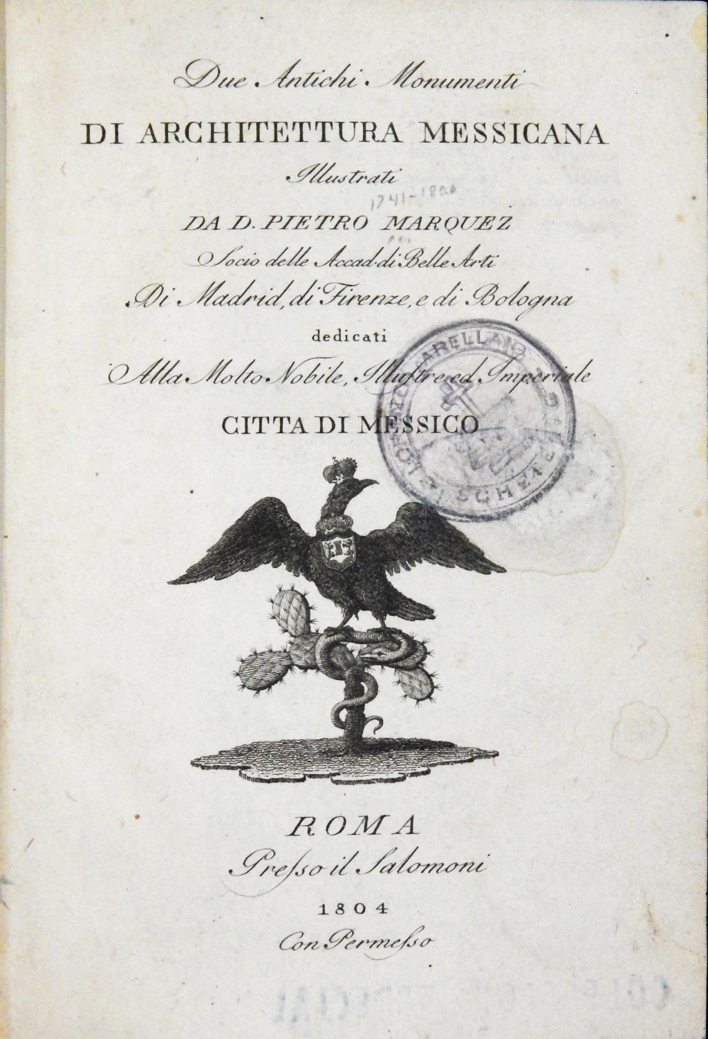 Due antichi monumenti di architettura messicana MX-SC-DGB-BM-RV-21885 Descargar Registro catalográfico Orden25039No. de registro21885Clave de obraMX-SC-DGB-BM-RV-21885No. de clasificación913.72No. de autorM377Autor personalMarquez, Pedro José, 1741-1820TítuloDue antichi monumenti di architettura messicanaMención de autoríaMustrati da d'Pietro Giuseppe MarquezCiudad, paísRomaLugar asociadoItalia > RomaEditorialPref. Soil SalomoniAño de publicación1804Siglo de publicaciónSiglo XIXDescripción física47 p. : grabados plegablesMaterias generalesIndios de México -- Arquitectura | México -- AntigüedadesColecciónColección Roberto Valles