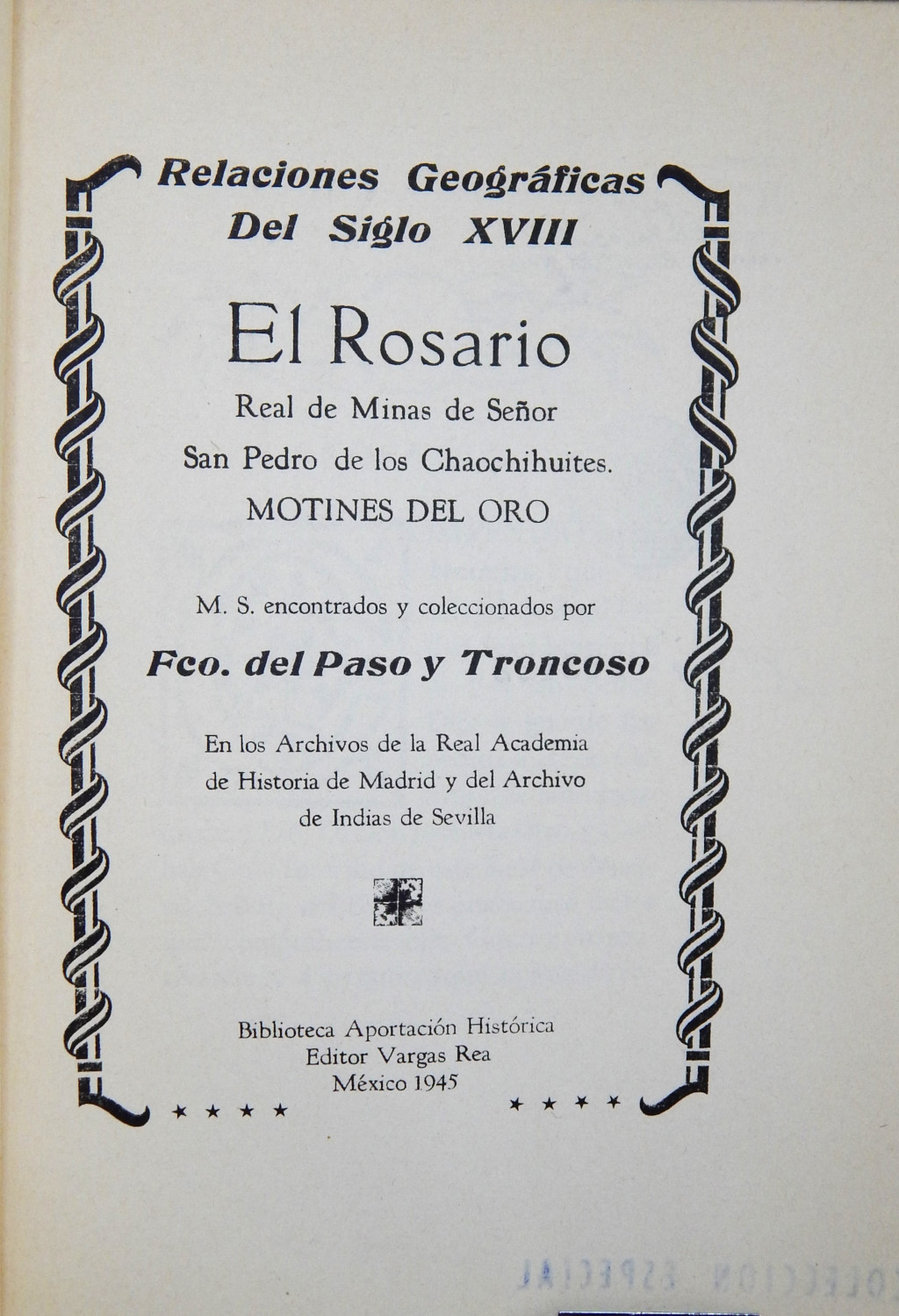 El Rosario Real de minas de Señor San Pedro de los Chaochihuites Motines del Oro