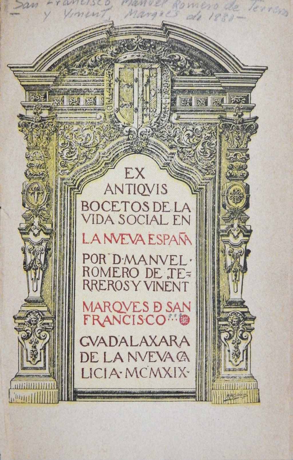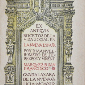 Particularidades: Portada a dos tintas y con frontispicio estilo barroco. Incluye índice. La biblioteca posee 2 ejemplares. En la p. ix, sello de tinta: "Mis - Tesoros - Liberan Biblioteca - De - México".