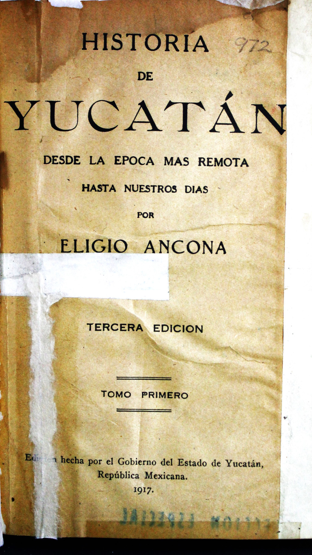 Historia de Yucatán MX-SC-DGB-BM-RV-22069 Descargar Registro catalográfico Orden25328No. de registro22069Clave de obraMX-SC-DGB-BM-RV-22069No. de clasificación972.65No. de autorA52Autor personalAncona, EligioTítuloHistoria de YucatánSubtítulodesde la época más remota hasta nuestros díasMención de autoríapor Eligio AnconaNo. edición3a. ed.Ciudad, país[Mérida], YucatánLugar asociadoMéxico > Yucatán > MéridaEditorialGobierno del Estado de YucatánAño de publicación1917Siglo de publicaciónSiglo XXDescripción física4 t. en 2 v.Materias generalesYucatán -- HistoriaColecciónColección Roberto Valles