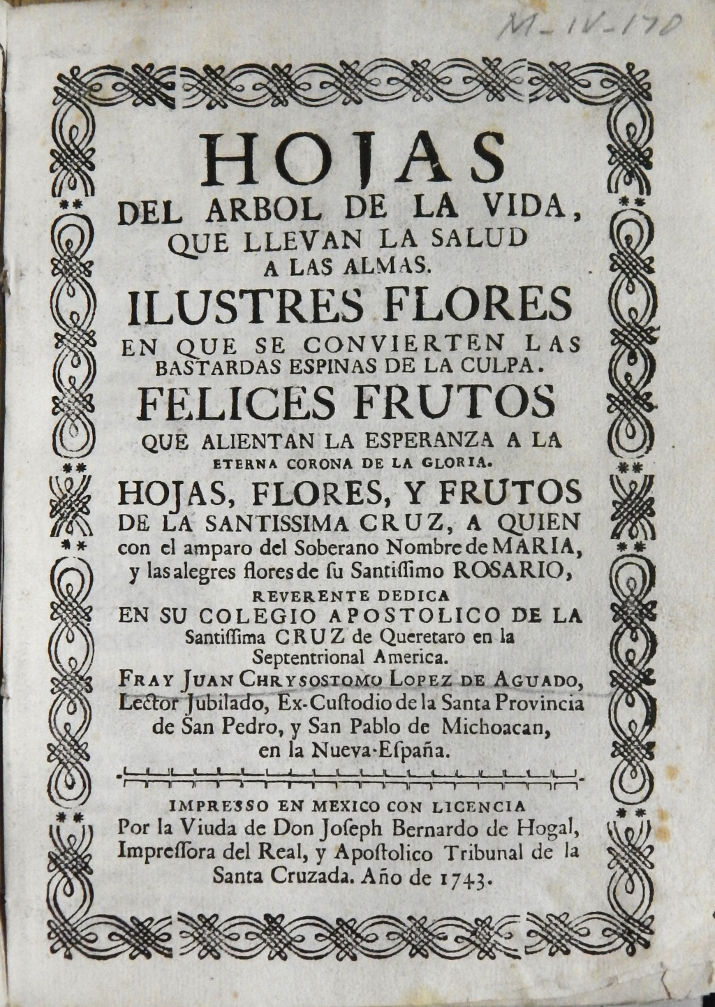 ilustres flores en que se convierten las bastardas espinas de la culpa, felices frutos que alientan la esperanza a la eterna corona de la gloria. Hojas, flores, y frutos de la Santissima Cruz, a quien con el amparo del soberano nombre de Maria y las alegres flores de su Santissimo Rosario ...
