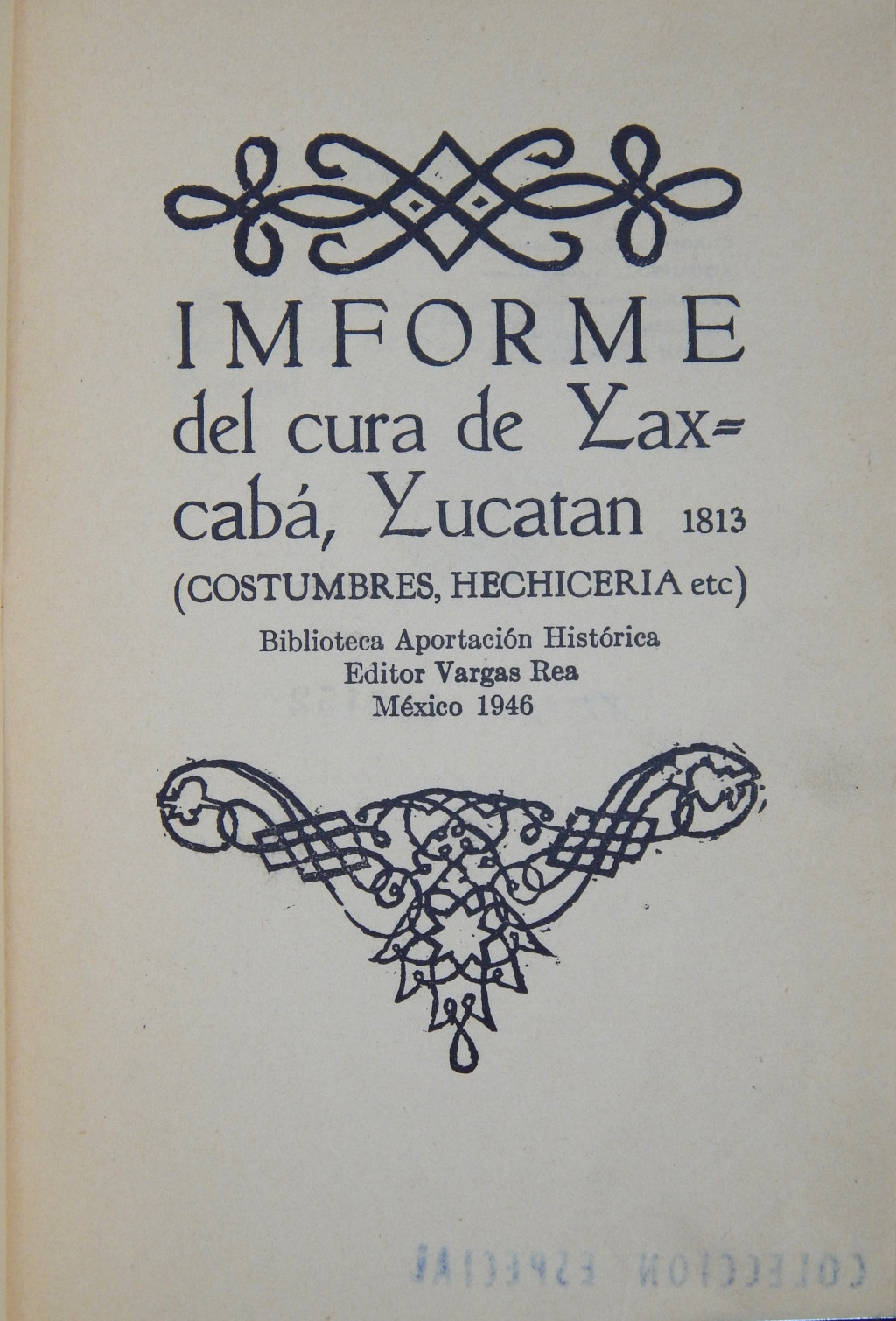 Imforme del cura de Yaxcabá, Yucatán 1813 MX-SC-DGB-BM-RV-22275 Descargar Registro catalográfico Orden25631No. de registro22275Clave de obraMX-SC-DGB-BM-RV-22275No. de clasificación299.7265 No. de autorG72Autor personalGranado y Baeza, Bartolomé José, 1742-1830TítuloImforme del cura de Yaxcabá, Yucatán 1813Subtítulocostumbres, hechicería, etc.Ciudad, paísMéxicoLugar asociadoMéxicoEditorialVargas ReaAño de publicación1946Siglo de publicaciónSiglo XXDescripción física28 p.SerieBiblioteca Aportación HistóricaMaterias generalesIndios de México -- Ritos y ceremonias | Indios de México -- Yucatán -- Religión y mitología | Indios de México -- Yucatán -- Vida social y costumbresColecciónColección Roberto Valles