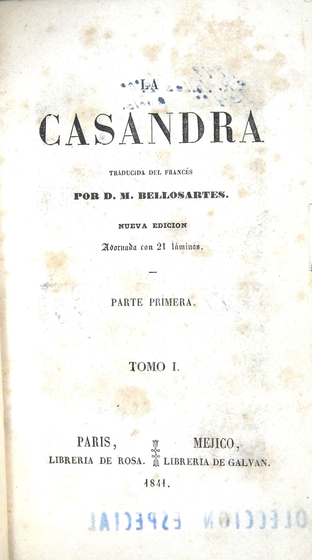 La casandra MX-SC-DGB-BM-RV-22686 Descargar Registro catalográfico Orden26191No. de registro22686Clave de obraMX-SC-DGB-BM-RV-22686No. de clasificación843No. de autorC37Segundo no. de autorC37TítuloLa casandraMención de autoríatr. de M. BellosArtesNo. ediciónNueva ediciónCiudad, paísParis; MexicoLugar asociadoMéxico | Francia > ParísEditorialLibrería de Galván | Librería de RosaAño de publicación1841Siglo de publicaciónSiglo XIXDescripción física580 p. : láms.Materias generalesNovela francesa | Casandro, 357-297 a.C. -- Novela | Alejandro III -- NovelaColecciónColección Roberto Valles