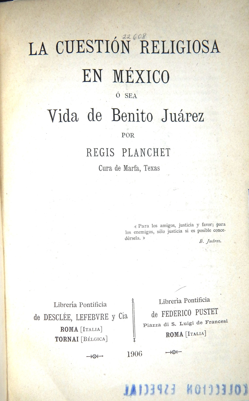 La cuestión religiosa en México o sea vida de Benito Juárez