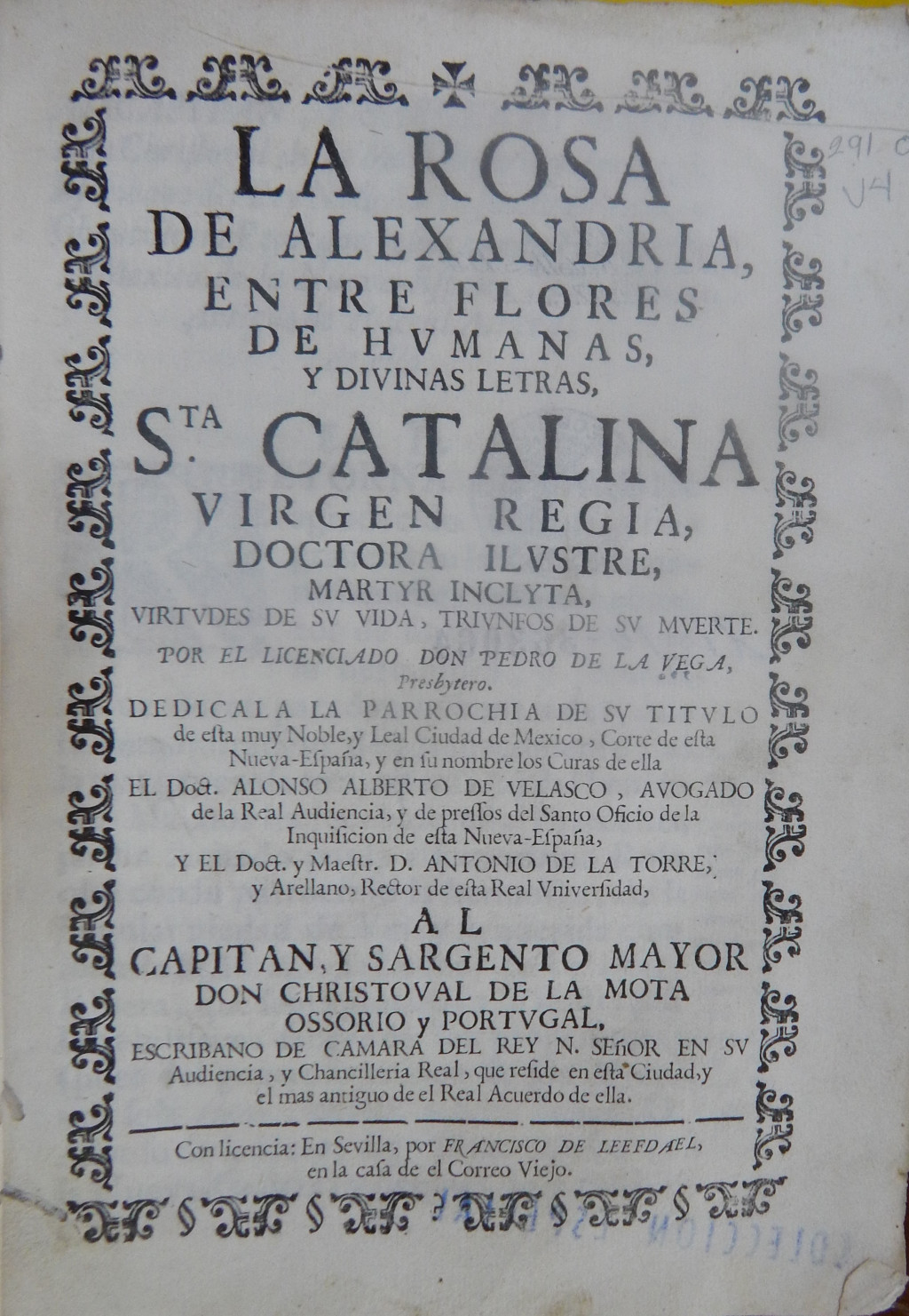 La Rosa de Alexandría, entre flores de hvmanas, y divinas letras, S.ta Catalina Virgen Regia, doctora Ilvstre, martyr inclyta, virtvdes de su vida, trivnfos de sv muerte