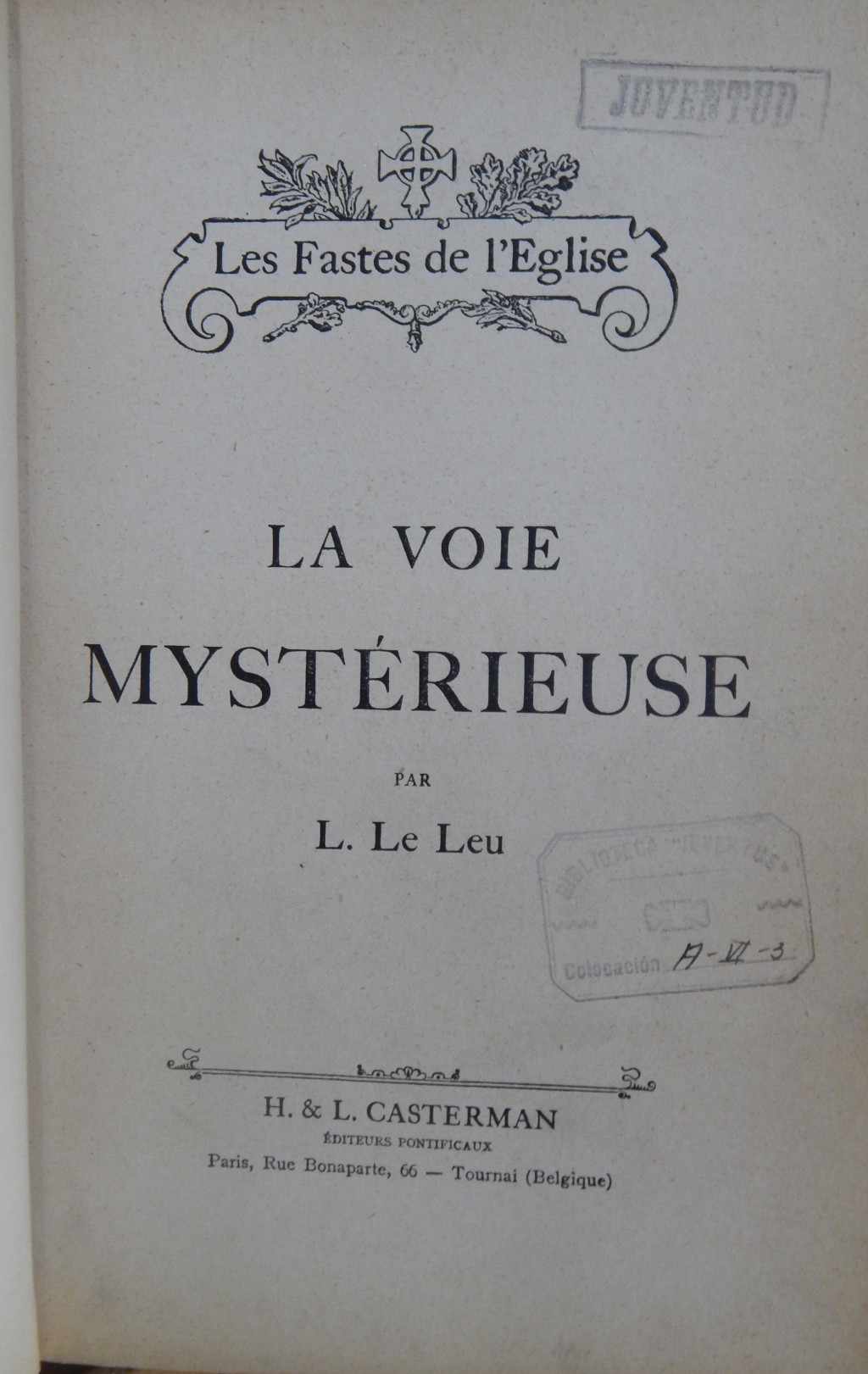 A la cabeza de la portada: Les fastes de l'eglise. Particularidades: Ilustraciones en color vino. Notas a pie de página. Incluye Tabla de materias. Texto en francés. Encuadernado a la holandesa en piel y tapas de papel jaspeado.