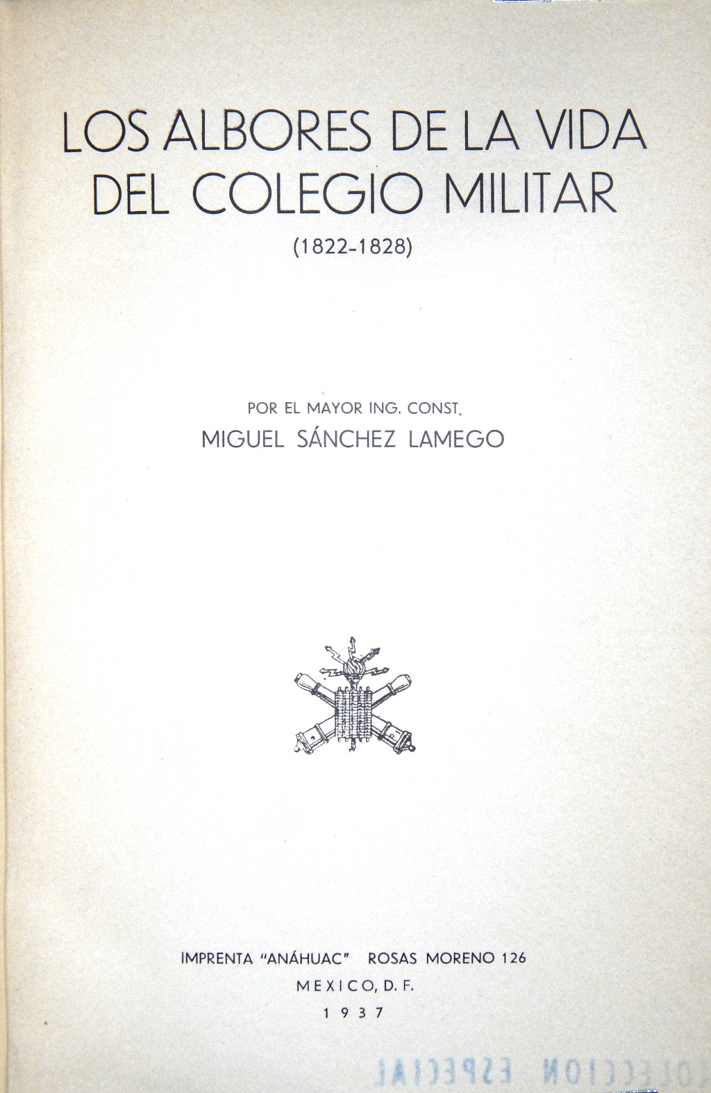 Los albores de la vida del Colegio Militar 1822-1828 MX-SC-DGB-BM-RV-22858 Descargar Registro catalográfico Orden26406No. de registro22858Clave de obraMX-SC-DGB-BM-RV-22858No. de clasificación373.243No. de autorS26Autor personalSánchez Lamego, Miguel A., 1897-?TítuloLos albores de la vida del Colegio Militar 1822-1828Mención de autoríaMiguel Sánchez LamegoCiudad, paísMéxicoLugar asociadoMéxicoEditorialImpr. AnáhuacAño de publicación1937Siglo de publicaciónSiglo XXDescripción física61 p.: retrs.Materias generalesMéxico (ciudad) -- Colegio Militar | México -- Historia militarColecciónColección Roberto Valles