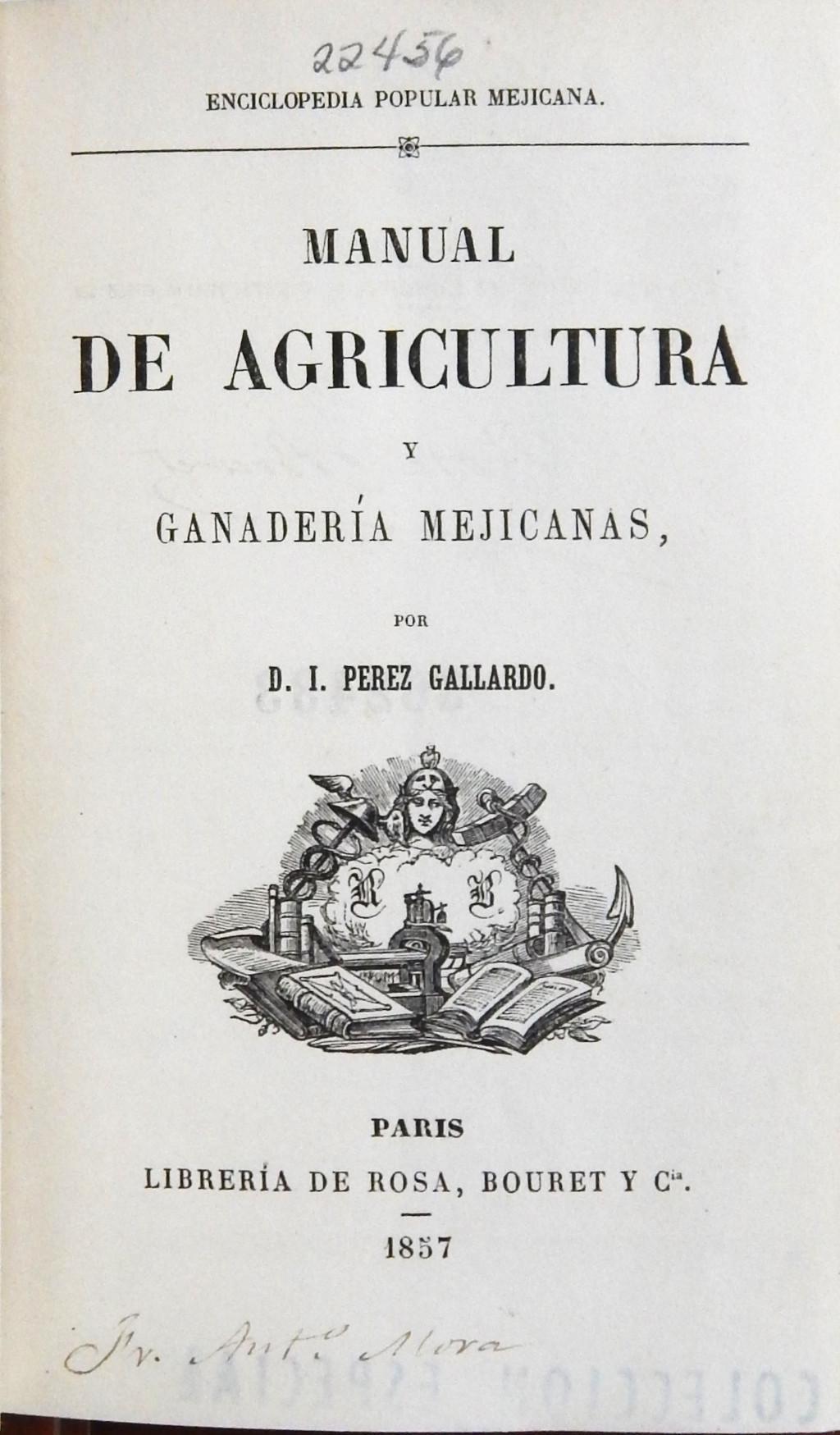 Manual de agricultura y ganadería mejicanas MX-SC-DGB-BM-RV-22456 Descargar Registro catalográfico Orden25885No. de registro22456Clave de obraMX-SC-DGB-BM-RV-22456No. de clasificación630.202No. de autorP47Autor personalPérez Gallardo, D. I.TítuloManual de agricultura y ganadería mejicanasMención de autoríapor D. I. Pérez GallardoCiudad, paísParísLugar asociadoFrancia > ParísEditorialLibrería de Rosa Bouret y Cía.Año de publicación1857Siglo de publicaciónSiglo XIXDescripción física280 p.Materias generalesAgricultura -- Manuales, etc.ColecciónColección Roberto Valles