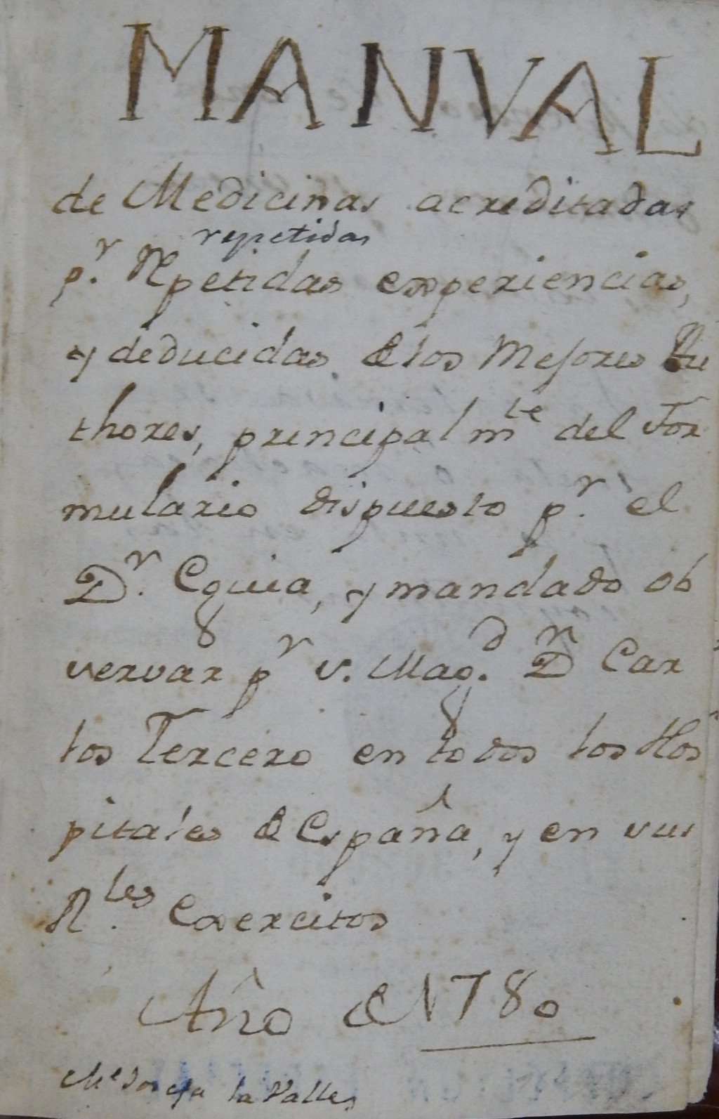 Manual de medicina acreditadas por repetidas experiencias y deducidas de los mejores autores, principalmente del formulario dispuesto por el doctor .. y mandados observar por su majestad don Carlos Tercero en todos los Hospitales de la Compañia..