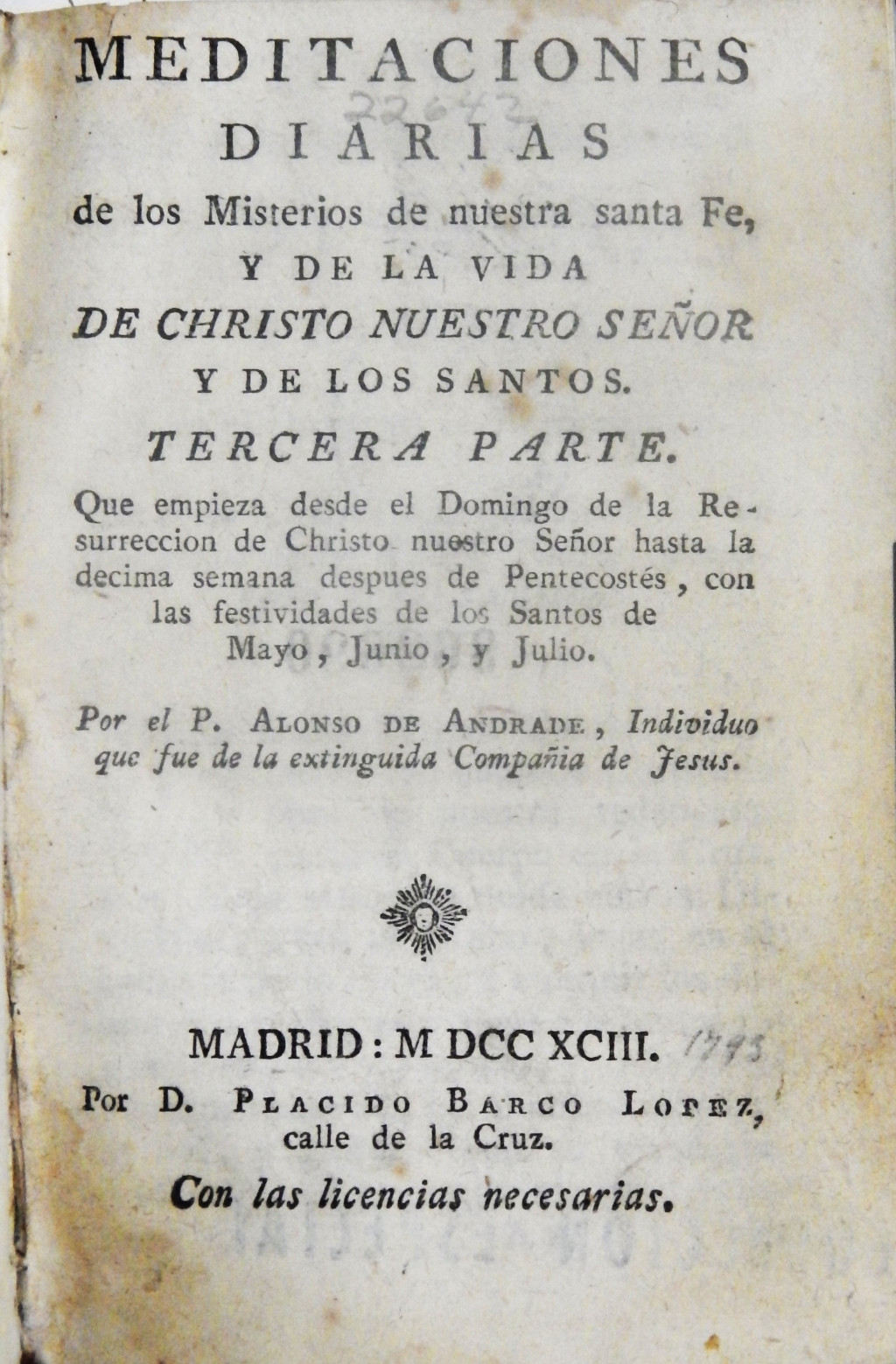 Meditaciones diarias de los misterios de Nuestra Santa Fe, y de la vida de Christo Nuestro Señor y de los Santos