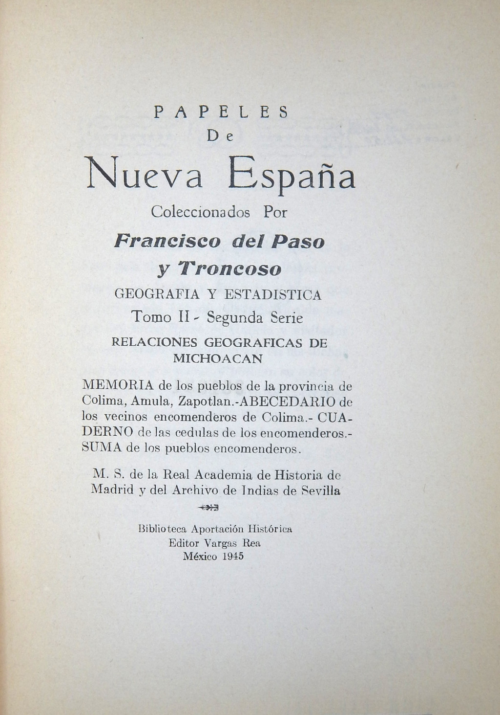 M. S. de la Real Academia de Historia de Madrid y del Archivo de Indias de Sevilla