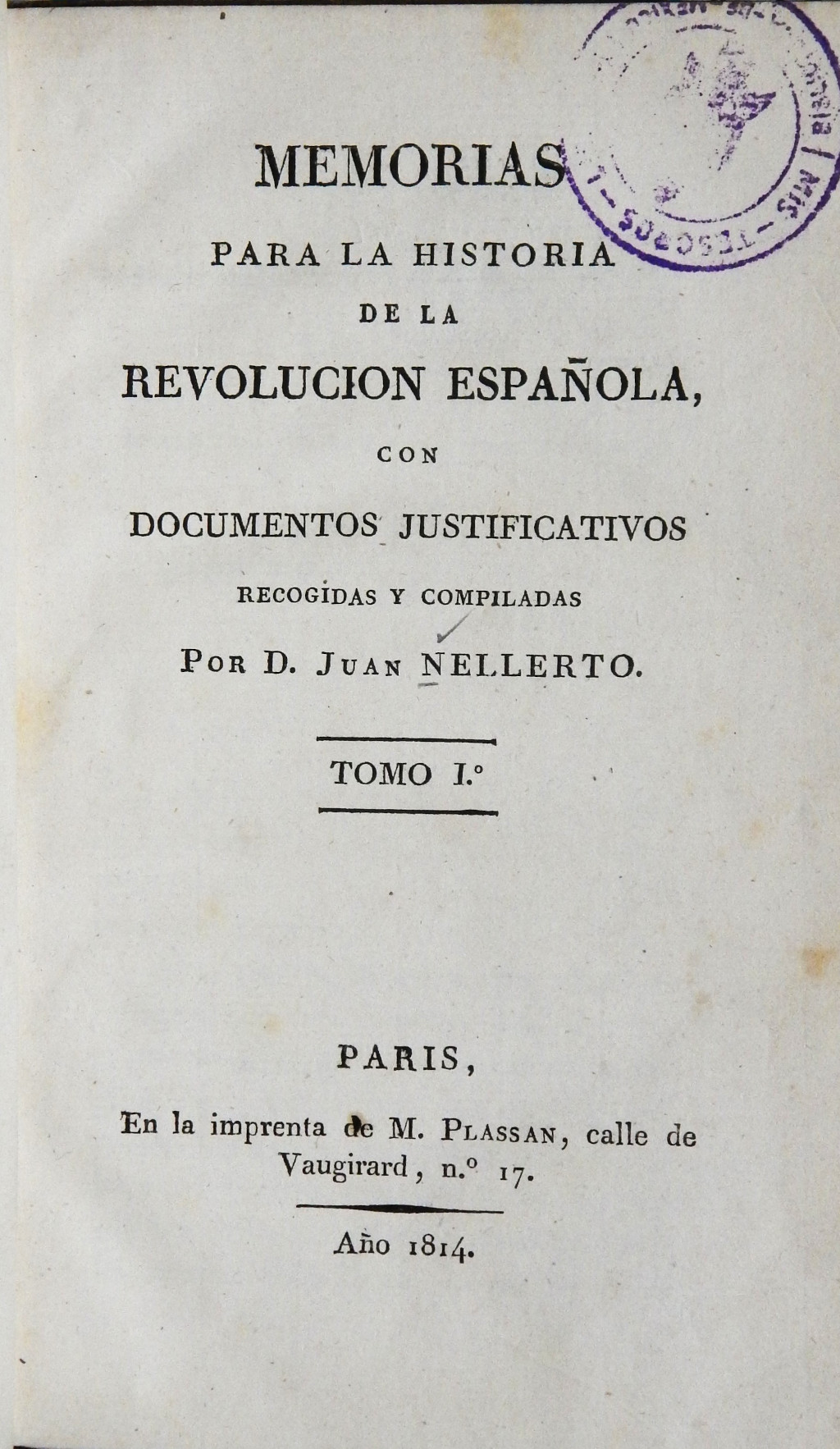 Memorias para la historia de la revolucion española con documentos justificativos MX-SC-DGB-BM-JGI-39948 Descargar Registro catalográfico Orden50057No. de registro39948Clave de obraMX-SC-DGB-BM-JGI-39948No. de clasificación946.06No. de autorM45TítuloMemorias para la historia de la revolucion española con documentos justificativosMención de autoríarecogidas y compiladas por D. Juan NellertoCiudad, paísParisLugar asociadoFrancia > ParísEditorialEn la Impr. de M. PlassanAño de publicación1814-1816Siglo de publicaciónSiglo XIXDescripción física3 v. ; 21 cm.Materias generalesGuerra peninsular, 1807 -- 1814 -- Fuentes | España -- Historia -- Conquista Napoleónica, 1803 -- 1813 -- FuentesColecciónColección Joaquín García Icazbalceta