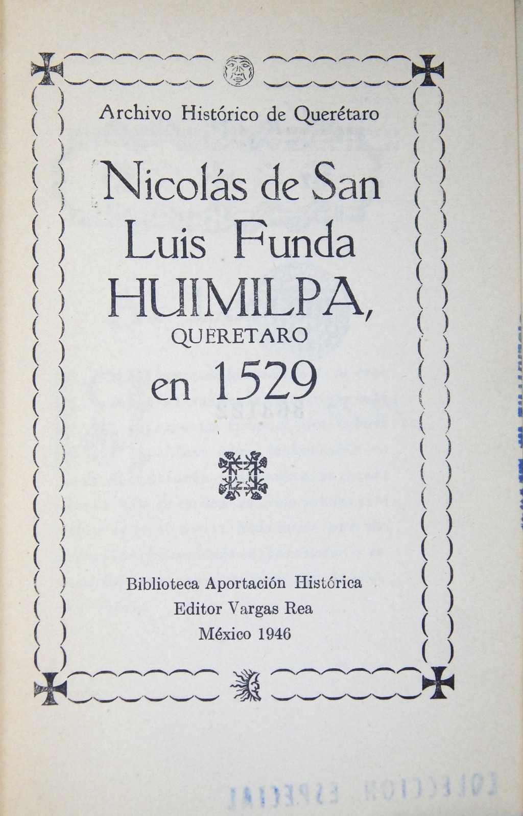 Nicolás de San Luis funda Huimilpa, Querétaro en 1529 MX-SC-DGB-BM-RV-22837 Descargar Registro catalográfico Orden26384No. de registro22837Clave de obraMX-SC-DGB-BM-RV-22837No. de clasificación972.45No. de autorN64TítuloNicolás de San Luis funda Huimilpa, Querétaro en 1529Mención de autoríaArchivo Histórico de QuerétaroCiudad, paísMéxicoLugar asociadoMéxicoEditorialVargas ReaAño de publicación1946Siglo de publicaciónSiglo XXDescripción física36 p. : retrs.SerieArchivo Histórico de QuerétaroMaterias generalesMontáñez, Nicolás de San Luis, siglo XVI | Huimilpan (Querétaro)ColecciónColección Roberto Valles Área de notas Notas generalesParticularidades: Portada orlada. Letras capitulares. Biblioteca Aportación Histórica. De esta edición se imprimieron 100 ejemplares numerados [no.] 80Nota de contenidoEs reproducción. La Biblioteca posee otro ejemplar