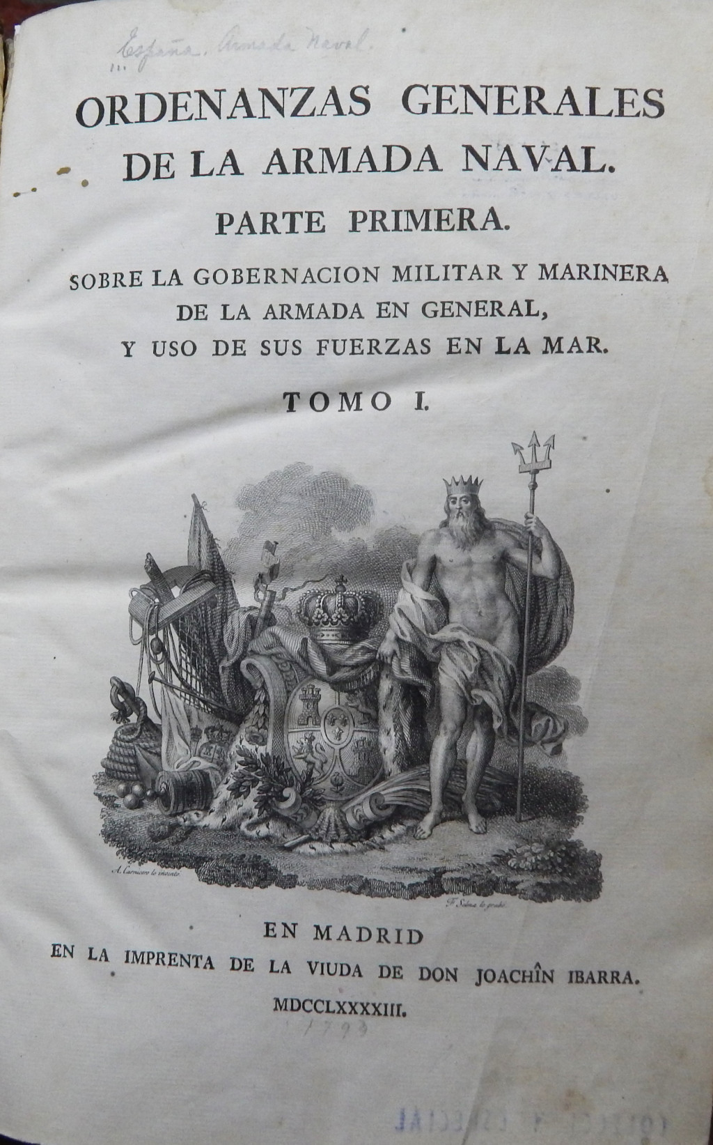Ordenanzas generales de la Armada Naval MX-SC-DGB-BM-RV-21777 Descargar Registro catalográfico Orden24887No. de registro21777Clave de obraMX-SC-DGB-BM-RV-21777No. de clasificación343.015No. de autorO65TítuloOrdenanzas generales de la Armada NavalSubtítulosobre la gobernacion militar y marinera de la Armada en general, y uso de sus fuerzas en la marCiudad, paísMadridLugar asociadoEspaña > MadridEditorialImprenta de la Viuda de D. Joaquin IbarraAño de publicación1793Siglo de publicaciónSiglo XVIIIDescripción física2 v.Materias generalesDerecho militar -- España | Fuerzas armadas -- EspañaColecciónColección Roberto Valles