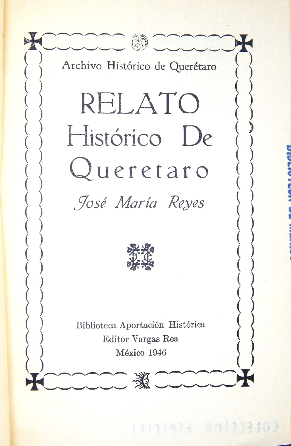 Relato histórico de Querétaro MX-SC-DGB-BM-RV-22840 Descargar Registro catalográfico Orden26387No. de registro22840Clave de obraMX-SC-DGB-BM-RV-22840No. de clasificación972.45No. de autorR49Autor personalReyes, José MaríaTítuloRelato histórico de QuerétaroMención de autoríaJosé María ReyesCiudad, paísMéxicoLugar asociadoMéxicoEditorialVargas ReaAño de publicación1946Siglo de publicaciónSiglo XXDescripción física47 p.Materias generalesQuerétaro -- HistoriaColecciónColección Roberto Valles Área de notas Notas generalesParticularidades: Portada orlada. Biblioteca Aportación Histórica. De esta edición se imprimieron 100 ejemplares numerados [no.] 69Nota de contenidoLa Biblioteca posee dos ejemplares