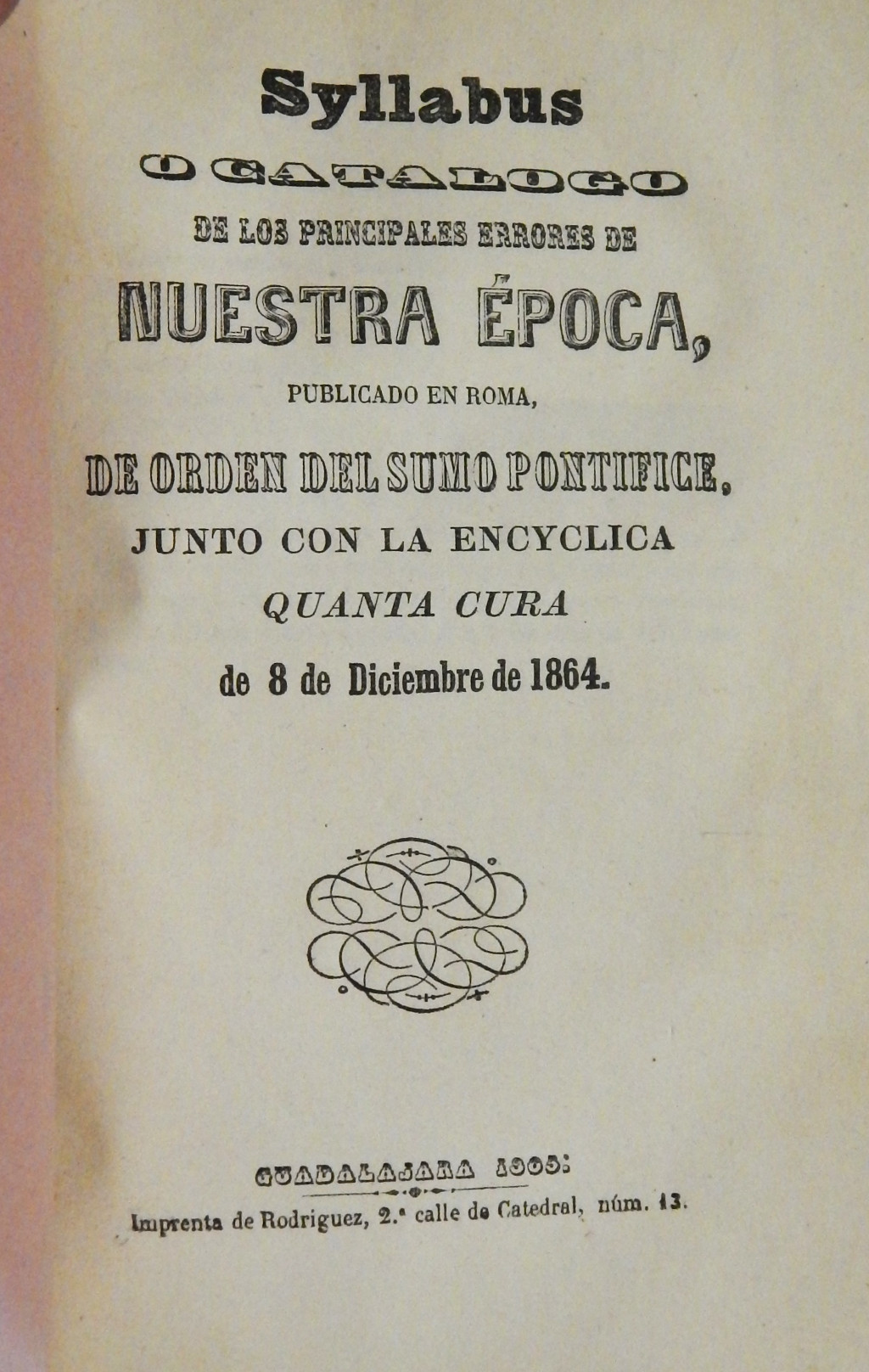 Syllabus, o, Catálogo de los principales errores de nuestra época, publicado en Roma, de orden del sumo pontifice
