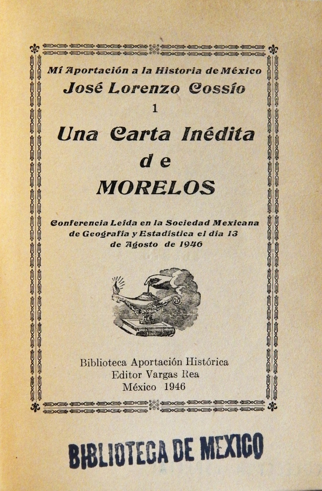Conferencia leída en la Sociedad Mexicana de Geografía y Estadística el día 13 de agosto de 1946. Particularidades: Portada orlada. La biblioteca posee otro ejemplar.