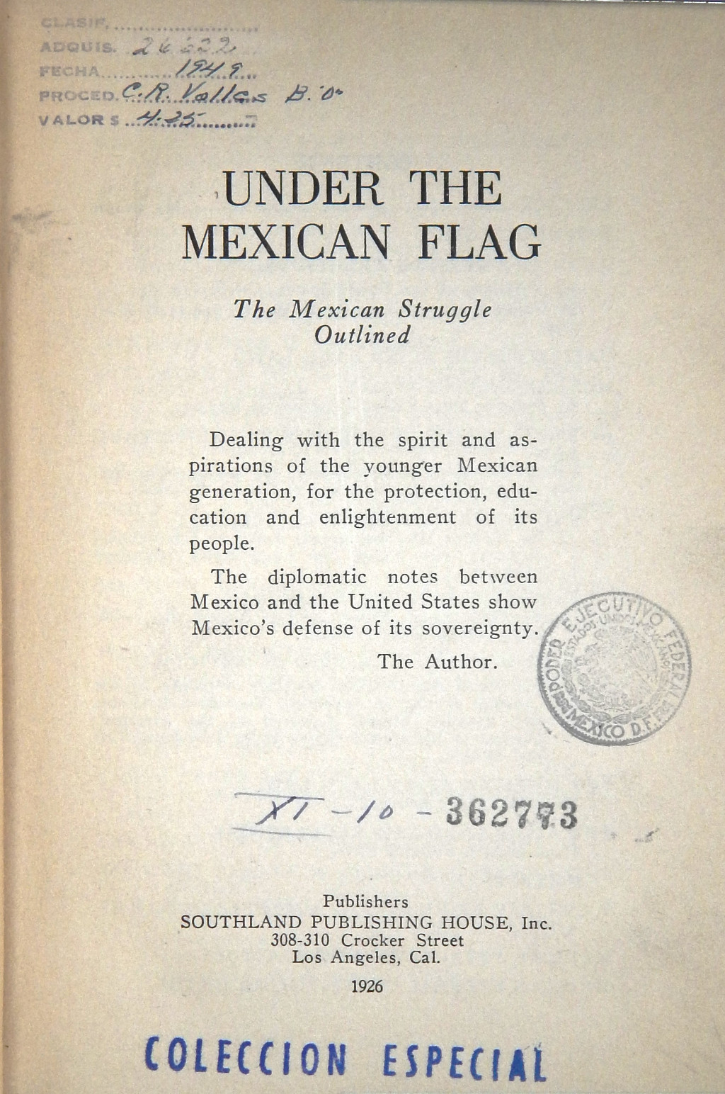 México -- Política y gobierno, 1910-1919 | México -- Relaciones exteriores -- E.E. U.U.